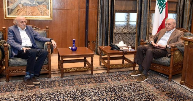 استقبل رئيس مجلس النواب نبيه بري في مقر الرئاسة الثانية في عين التينة الرئيس السابق للحزب التقدمي الإشتراكي الوزير السابق وليد جنبلاط، حيث تم البحث في آخر تطورات الاوضاع في لبنان والمنطقة والمستجدات السياسية والميدانية.