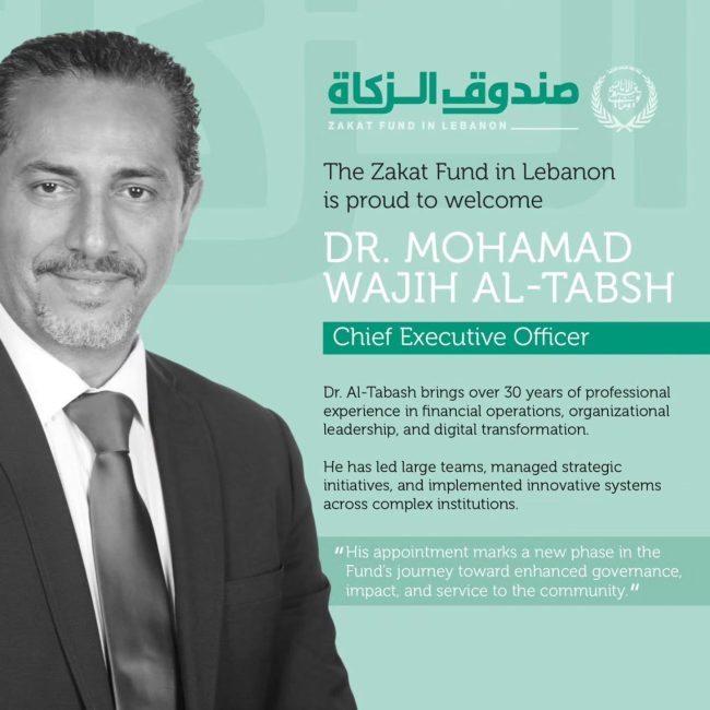 أعلن صندوق الزكاة في لبنان عن تعيين الدكتور محمد الطبش رئيسًا تنفيذيًا جديدًا للصندوق، في خطوة تعكس توجهه نحو تعزيز الأداء المؤسسي وتوسيع الأثر الاجتماعي لخدمة المستحقين.