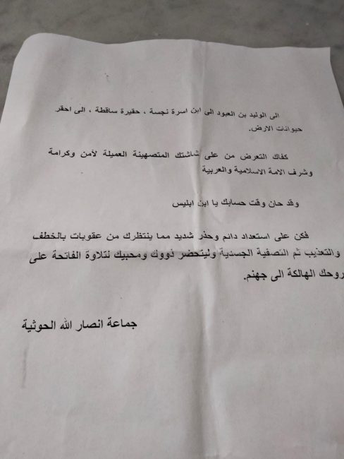 كتب الصحافي رامي نعيم عبر صفحته على منصة “إكس” أن الإعلامي وليد عبود تعرّض صباح اليوم لتهديدات مباشرة أمام منزله، من خلال منشورات موقعة باسم جماعة إرهابية، تضمنت تهديدات بالخطف والقتل.