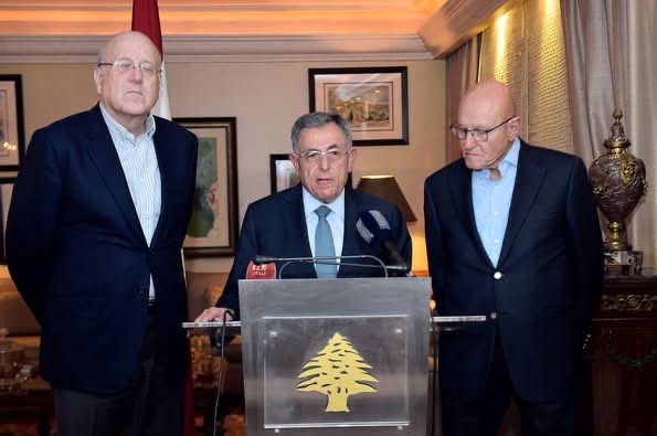 في ضوء التطورات الحاصلة على مختلف المستويات تداعى رؤساء الحكومة السابقون: نجيب ميقاتي، فؤاد السنيورة، وتمام سلام للبحث والتداول بشأنها، وحيث توقفوا أمام النقاط الآتية: