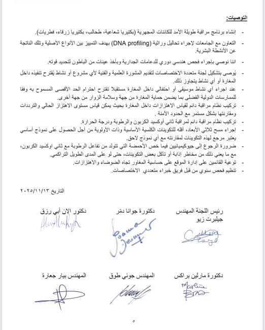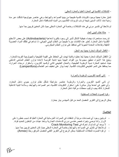 وأعلنت الوزارة في البيان، أن اللجنة لم تسجل أي أضرار ميكانيكية أو جيولوجية أو بيئية في المواقع التي جرى تفحصها، وأن النظام البيئي الجوفي لا يزال مستقراً.