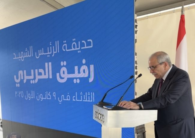 “هنا، على الواجهة البحرية، نضع حجر الأساس لحديقة عامة تحمل اسم رجل أحبّ بيروت وأحبّته: الرئيس الشهيد رفيق الحريري.”