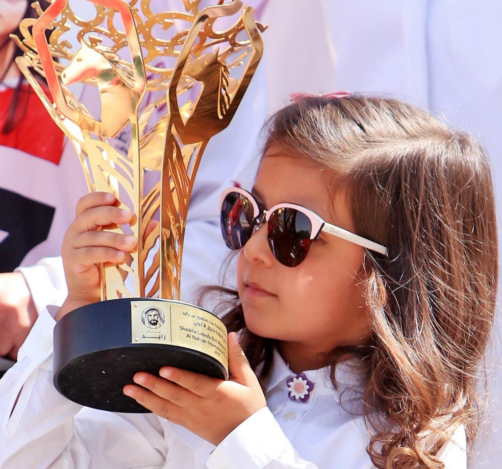 عقب ختام السباق قامت الشيخة فاطمة بنت منصور بن زايد آل نهيان وشقيقتها الشيخة لطيفة بنت منصور بن زايد آل نهيان، وعدنان سلطان مدير نادي ابوظبي للفروسية ولارا صواياالمدير التنفيذي للمهرجان العالمي للشيخ منصور بن زايد آل نهيان للخيول العربية رئيس الاتحاد الدولي لأكاديميات سباقات الخيل «إيفهرا»، مدير عام الوثبة ستاليونز، رئيس لجنة سباقات السيدات في الاتحاد الدولي لسباقات الخيول العربية ومسلم العامري مدير إسطبلات الجزيرة 1و2 بتتويج الفائزات الثلاث الأُول.
