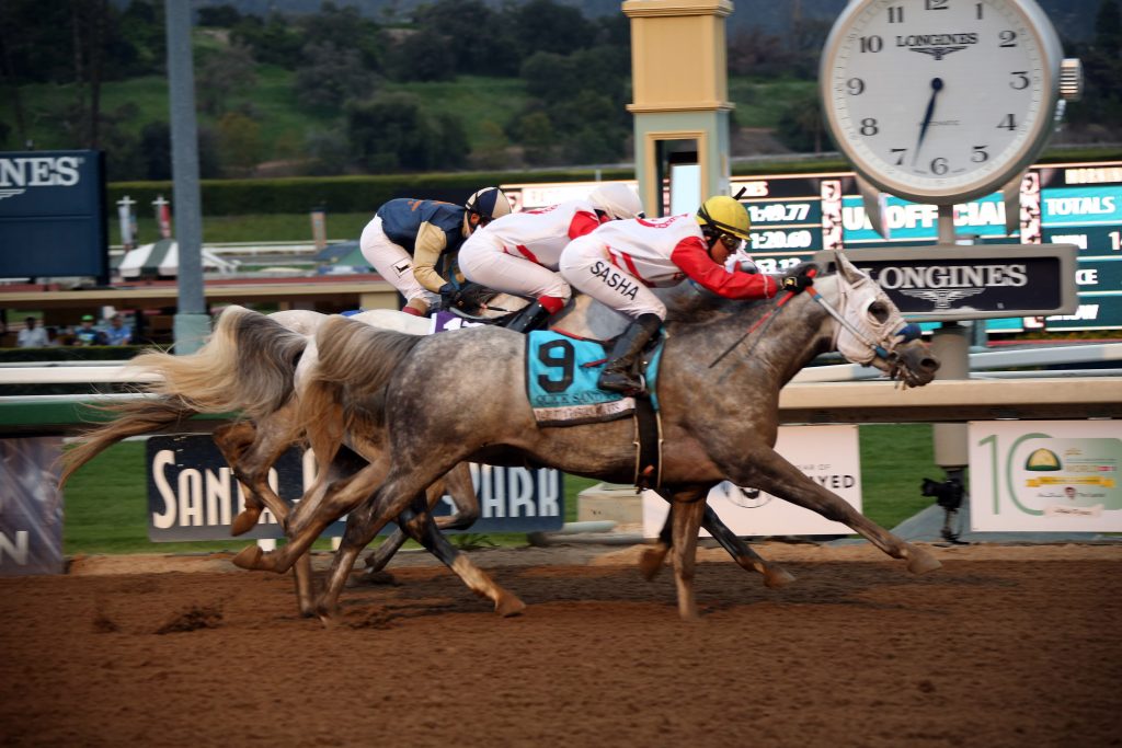وكان من بين أشواط السباق الذي أقيم على المضمار ، سباق ديربي سانتا أنيتا للخيول المهجنة الأصيلة للفئة الأولى البالغ إجمالي جوائزه المالية مليون دولار أمريكي وشارك فيه 7 خيول ،وتوج بطلا لهذا السباق الجواد ” غوستافي ” بقيادة الفارس مايك سميث وإشراف المدرب بوب بافاريت الذي سبق له الفوز بلقب كاس دبي العالمي ثلاثة مرات من قبل خلال السنوات الماضية .