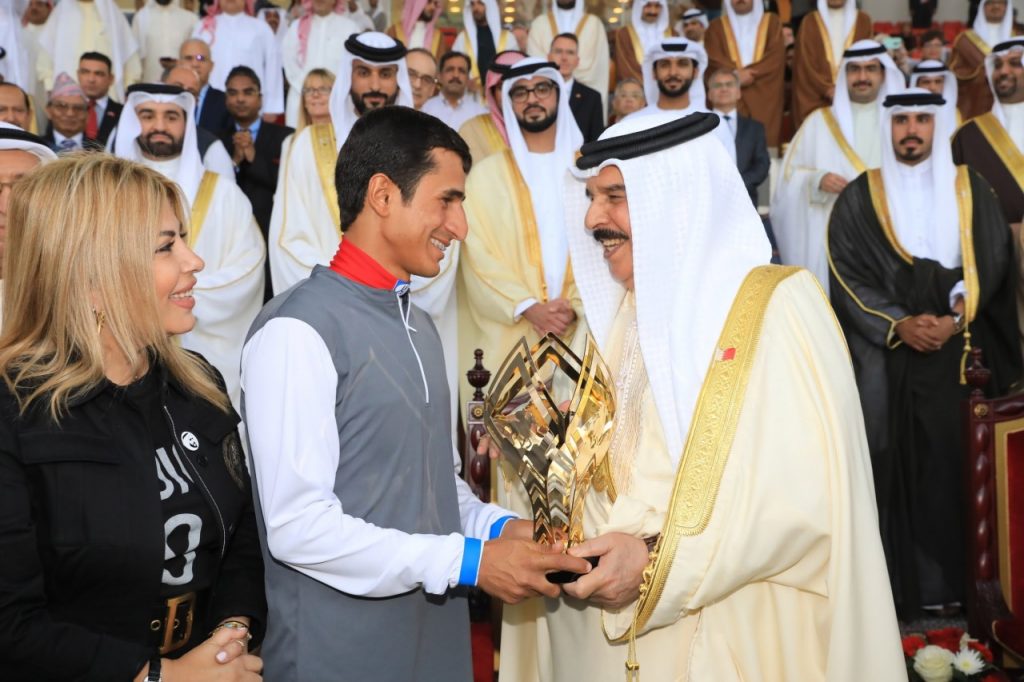 توج عاهل مملكة البحرين الملك حمد بن عيسى آل خليفة ،الفائزين في مونديال أم الإمارات للفرسان المتدربين في ختام الجولة الأولى من المونديال للفرسان المتدربين البالغ جائزته المالية 20 ألف يورو، التي أقيمت على مضمار نادي راشد للفروسية وسباق الخيل في العاصمة البحرينية المنامة، بالتزامن مع مهرجان كأس الملك حمد بن عيسى آل خليفة عاهل البحرين، بحضور ولي عهد البحرين الشيخ سلمان بن حمد آل خليفة ، والشيخ سلطان بن حمدان بن زايد آل نهيان سفير الإمارات لدى المملكة ، والشيخ ناصر بن حمد بن عيسى آل خليفة رئيس المجلس الأعلى للشباب والرياضة ضمن النسخة الحادية عشرة للمهرجان العالمي للشيخ منصور بن زايد آل نهيان للخيول العربية الذي يقام تحت شعار “عالم واحد 6 قارات أبوظبي العاصمة”.