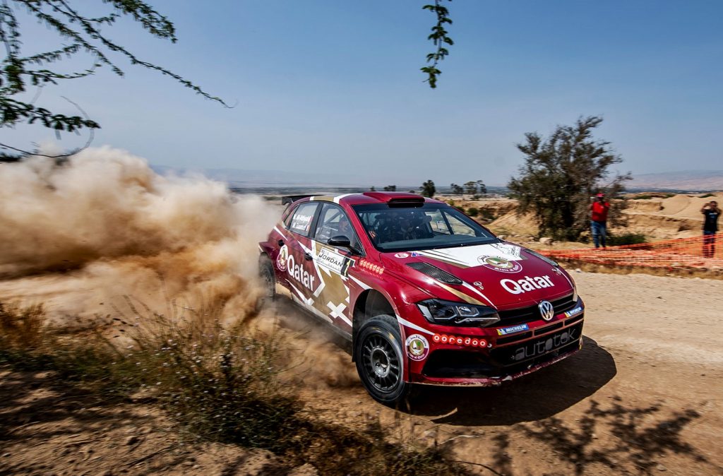 وكان العطية عانى من مشاكل في نظام التعليق في المرحلة الخاصة الـ 15 (قمر 1)، واضطر هو وملّاحه الفرنسي ماثيو بوميل إلى إنهاء آخر مرحلَتَيْن من القسم الصباحي مع سيارة مُصابة، وعمل فريق “أوتوتيك” الذي يُشرف على سيارة فولكس فاكن بولو “جي تي آي – آر 5” على إصلاح ما يُمكن إصلاحه خلال فترة الصيانة مُنتصف اليوم، بما توافر من قطع غيار، واجتاز الثُنائي القسم الأخير لمراحل الرالي بفارق 4:08.2 دقائق عن أقرب مُنافسيه.