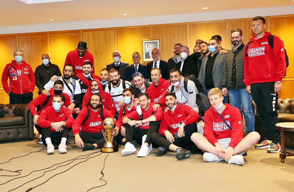 وأقيم استقبال رسمي له في صالون الشرف، بحضور ممثل لوزارة الشباب والرياضة محمد عويدات الذي قال: “باسم وزير الشباب والرياضة الدكتور جورج كلاس، أرسل التهاني إلى أبطال المنتخب الذين رفعوا اسم لبنان، وأسعدوا وأفرحوا كل فئات الشعب اللبناني. لقد حققنا فوزا تاريخيا بفوز الابطال وبحصولنا للمرة الأولى على كأس بطولة العرب، وهذا الأمر ليس غريبا على لعبة كرة السلة، إذ تتميز دائما من بين أنواع الرياضات وتجعل الشعب اللبناني فخورا”.