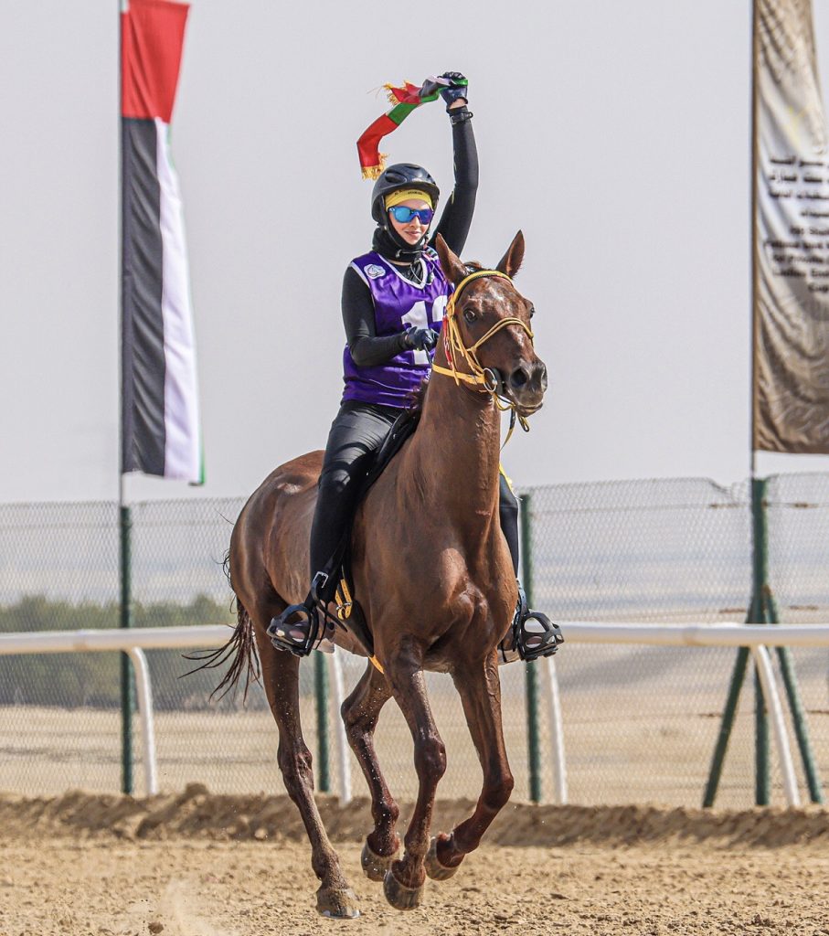 توجت الفارسة ليلى المرزوقي بلقب الشيخة فاطمة بنت مبارك “أم الإمارات” للإسطبلات الخاصة للقدرة للسيدات لمسافة 100 كلم، الذي أقيم السبت بقرية الإمارات العالمية للقدرة بالوثبة بمشاركة 104 فارسات يمثلن مختلف الإسطبلات في الدولة.