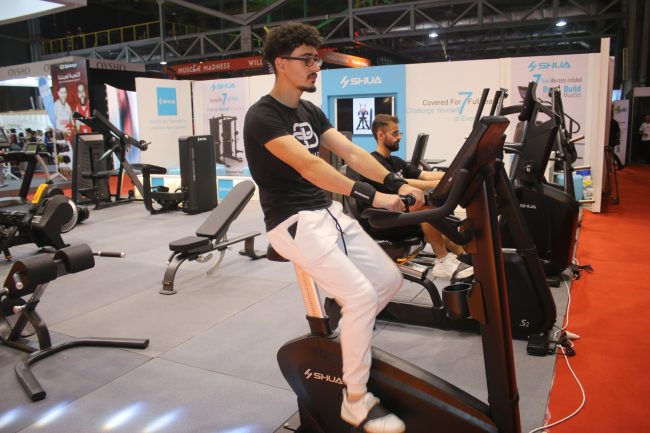أجهزة التمرين واللياقة البدنية هي الأكثر رواجاً وانتشاراً في المعرض ، وقد شاركت العديد من الوكالات المحلية والعالمية في الأجنحة لتجهيز الأندية كما للمنازل بحسب أوقات الممارسين لرياضة اللياقة البدنية للحفاظ على الرشاقة والشكل والصحة من الجنسين .