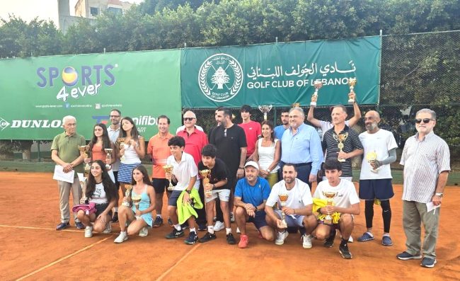 أختتمت دورة نادي الغولف المفتوحة في التنس التي أقيمت بإشراف الإتحاد اللبناني للعبة وجرت منافساتها على ملاعبه الخمسة في منطقة الجناح – بيروت وأقيم حفل توزيع الجوائز على الفائزين والفائزات بحضور رئيس الإتحاد اللبناني للتنس آلان صايغ وممثل رئيس نادي الغولف كريم سليم سلام نائبه ماهر بيضون وعضو الهيئة الإدارية للنادي رئيسة لجنة الأنشطة صونيا ياسين وممثل رئيس مجلس إدارة طيران الشرق الأوسط محمد الحوت الكابتن محمد عزيز ومدير الدورة رئيس لجنة التنس في نادي الغولف نائب رئيس الإتحاد اللبناني للتنس حسان الداعوق وعضولجنة التنس إسماعيل فرج وأهالي اللاعبين واللاعبات .