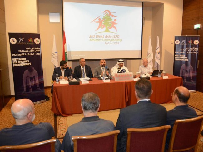 أعلن  الاتحاد اللبناني لألعاب القوى رسمياً عن بطولة غرب آسيا الثالثة للشباب والشابات(تحت ال20 سنة)  التي ستقام بين 2 و5 تشرين الأول الجاري  في “مدينة كميل شمعون الرياضية” (بيروت) وفي نادي الجمهور الرياضي  برعاية وزيرة الشباب والرياضة الدكتورة نورا بايراقداريان وتحت اشراف الاتحاد الآسيوي واتحاد غرب آسيا.وعُقد المؤتمر الصحافي في فندق “رمادا بلازا”.