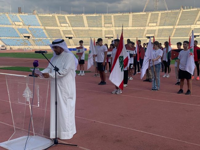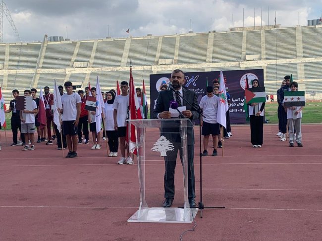 النشيد الوطني افتتاحاً فكلمة ترحيبية من عريّف الحفل الاعلامي انطوني مجدلاني رحّب فيها بالحاضرين فدخول بعثات الدول التسع المشاركة في البطولة على وقع الموسيقى والتصفيق .ثم القى سعادة كلمة اعتبر فيها ان الاتحاد اللبناني لألعاب القوى استضاف البطولة على الرغم من الظروف الصعبة التي يعيشها لبنان .وتحدث عن تأهيل “مدينة كميل شمعون الرياضية” التي باتت في “حلّة جديدة ” بدعم من الوزيرة بايراقداريان والدكتور حموّد. ووجّه الشكر الى كل من سيساهم في انجاح البطولة من الاتحاد الآسيوي واتحاد غرب آسيا والاتحاد اللبناني والدول المشاركة وعائلة العاب القوى اللبنانية واللجنة المنظمة وشاكراً الوزير بايراقداريان لرعايتها البطولة ورجال الصحافة والاعلام على تغطيتهم وقائع البطولة وأخبار العاب القوى اللبنانية على مدار السنة.واعتبر سعادة أن الرياضة تتطوّر في الدول بفضل الامكانات الموجودة بعكس لبنان حيث تعيش الرياضة اللبنانية شحّاًعلى الصعيد المالي. ووجّه سعادة نداءاً الى رئيس الجمهورية العماد جوزيف عون لمعالجة الوضع الرياضي.كما وجّه سعادة الشكر الى رئيس اللجنة الأولمبية جهاد سلامة.